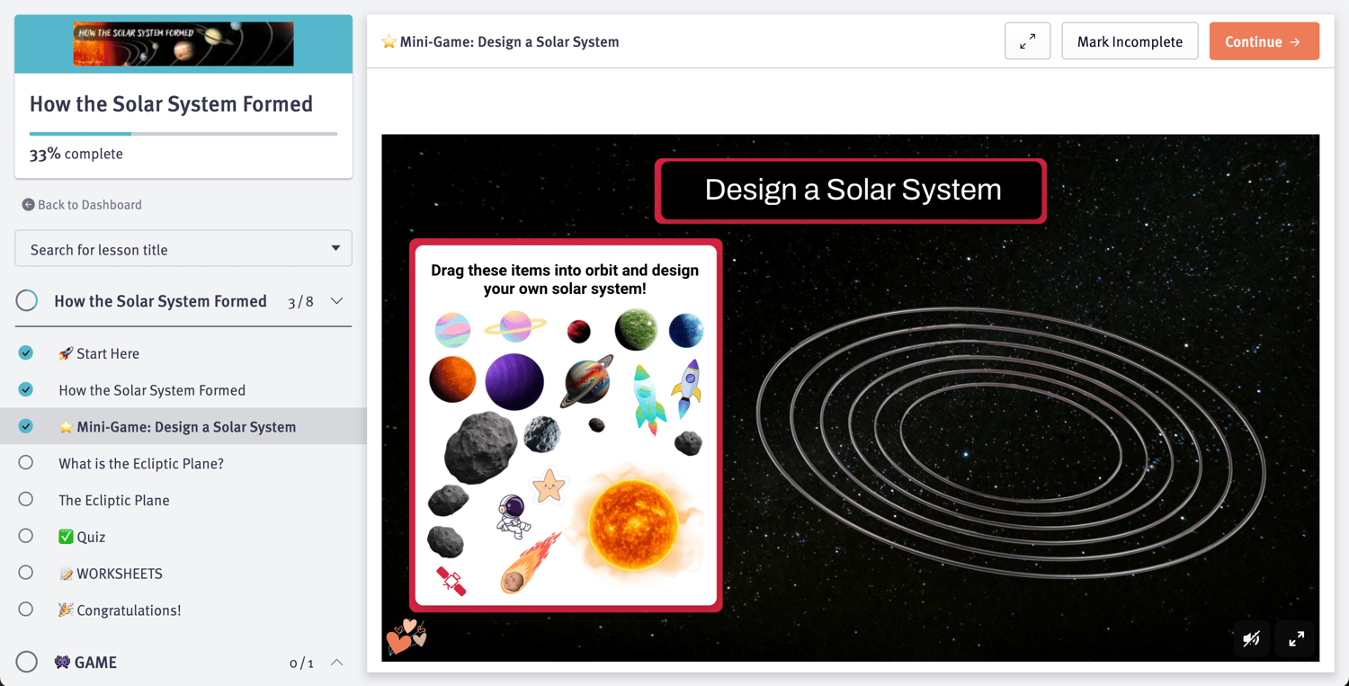 ✔ Mini-game – Design a Solar System